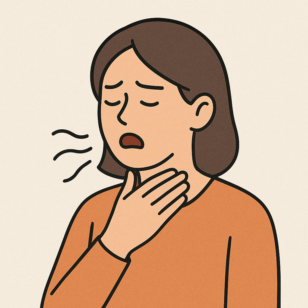 깊게 숨 쉴 때, 기침할 때, 혹은 웃을 때 가슴이 뻐근하거나 통증이 생기면 폐 주변에 이상이 있다는 신호입니다. - 목소리 변화 🎤