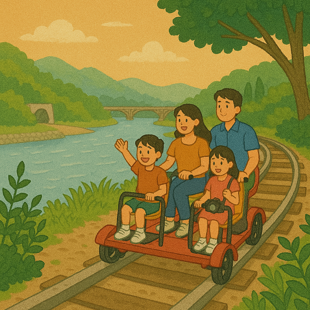 특히 철길 옆으로 보이는 강과 산의 풍경이 어우러져 그림 같은 장면이 펼쳐지고, 가족·연인 모두가 함께 즐길 수 있는 액티비티로 추천합니다 🚲.