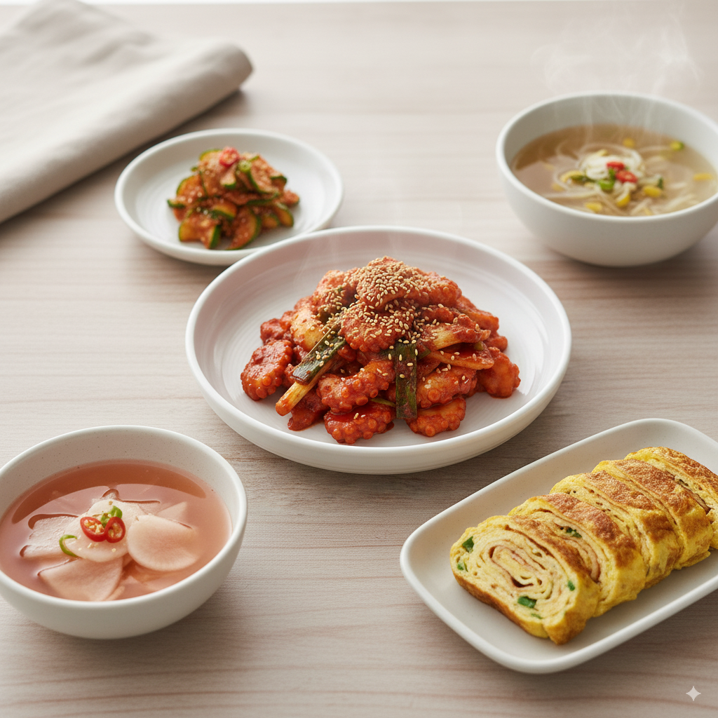 👉 낙지볶음이 매콤하니까, 곁반찬은 담백하거나 새콤한 걸로 준비하면 입안이 조화롭습니다.