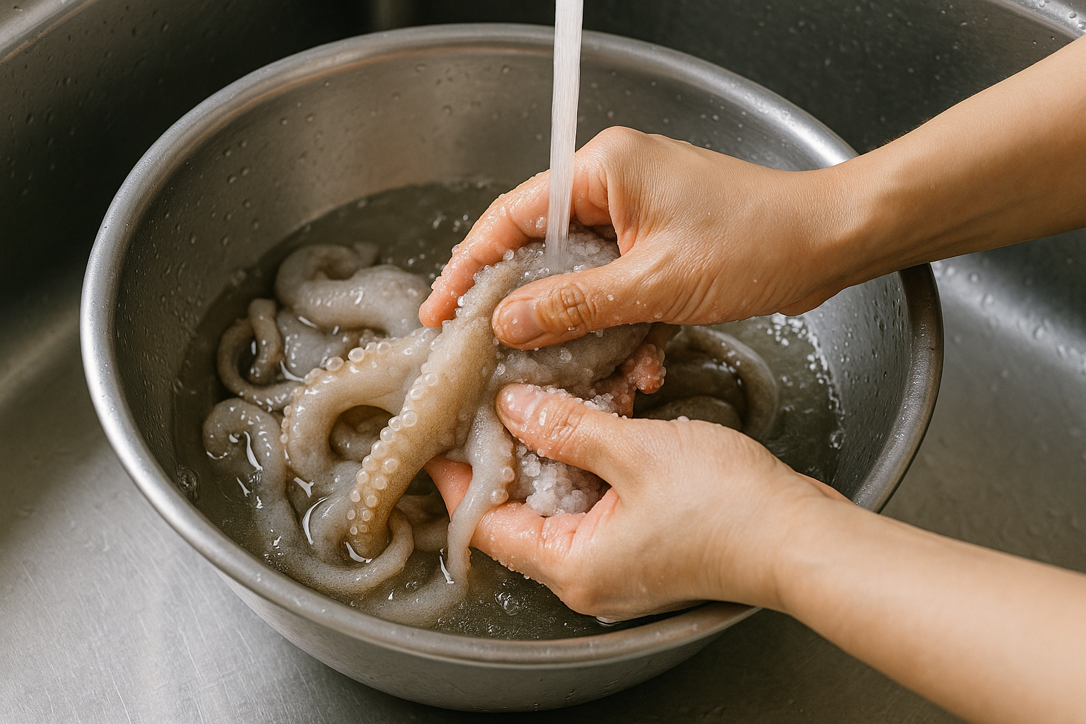 낙지볶음 맛을 좌우하는 첫 번째 포인트는 바로 낙지 손질이에요. 낙지에서 나는 비릿한 맛과 점액질만 잘 제거해도 맛이 달라져요.