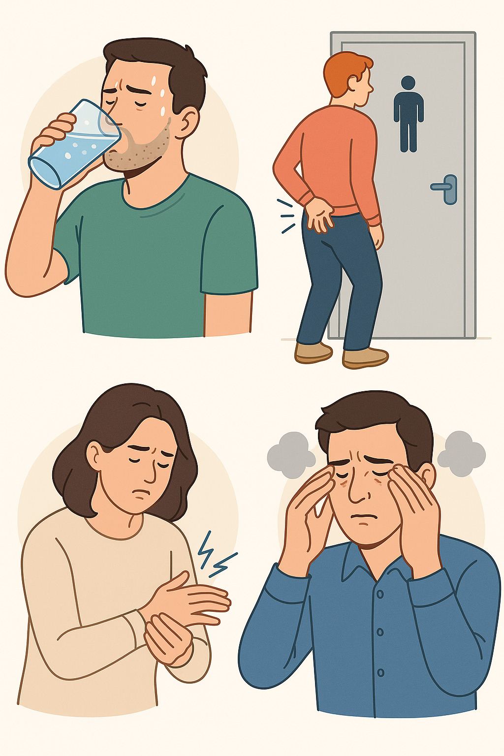 고혈당 상태에서는 신장이 혈액 속 포도당을 걸러내기 위해 과도하게 일을 합니다. 그 과정에서 수분까지 같이 빠져나가니, 아무리 물을 마셔도 갈증이 풀리지 않습니다.