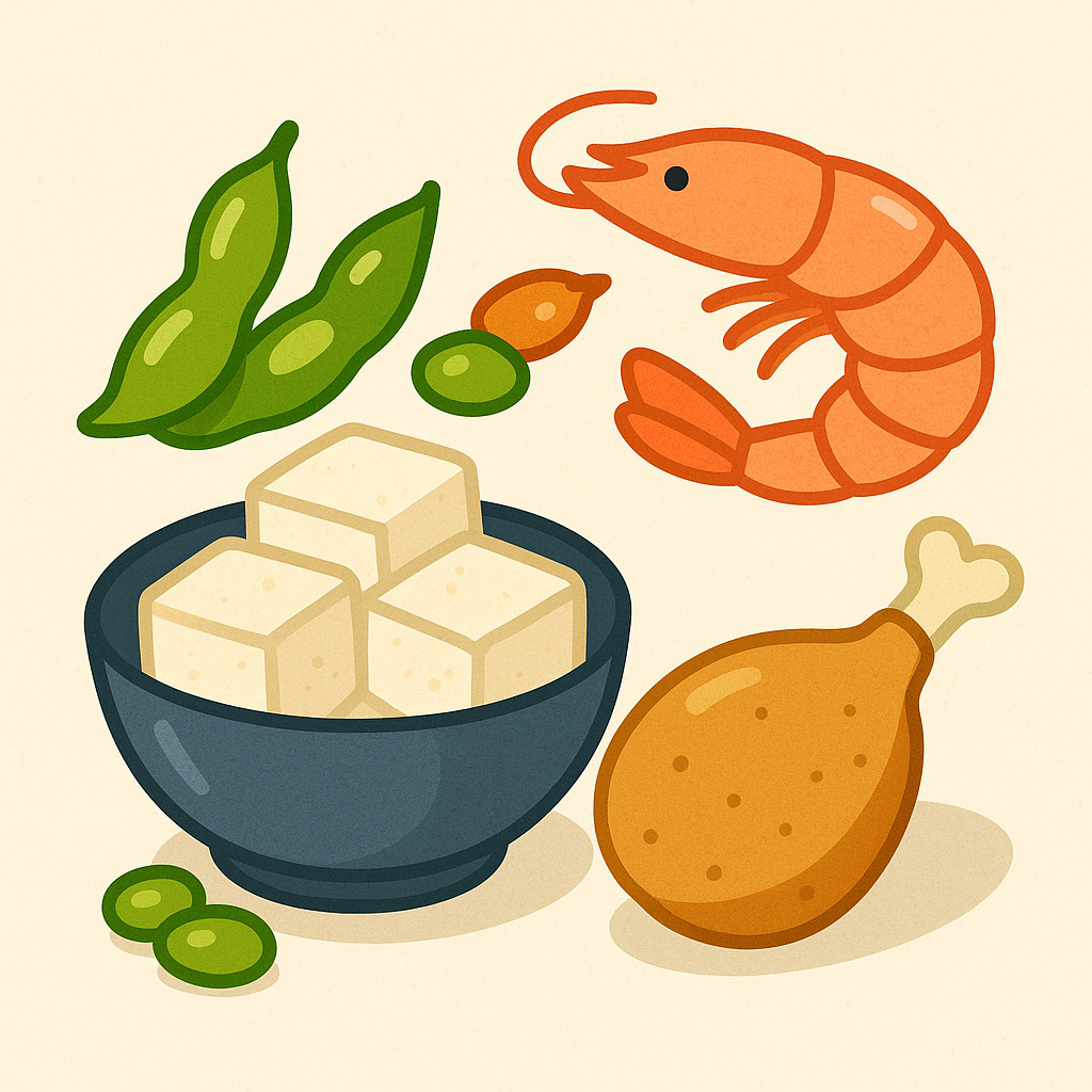 - 음식 속 함량: 간, 콩, 해산물, 닭고기, 두부 등에 소량 포함